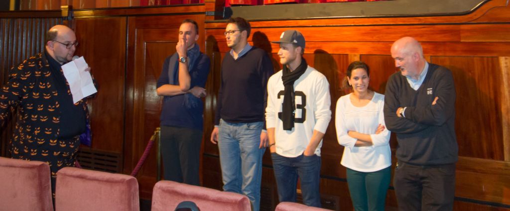 | Vielen Dank an das Passage-Kino für die termingerechte Begrüßung im Foyer! | Sneak-Urgestein Jana hat die Halloween-Gedanken verinnerlicht (oder veräußerlicht), während sich Theaterleiter Nils in der modernen Kunst des Photobombings übt. ;-) |